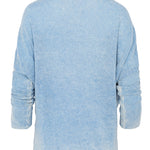 Jersey oversize de la firma francesa absolute cashmere. Cuello pico y manga larga en canalé. Aberturas laterales. Color azul Denim con efecto lavado, detalle en cuello y sisa en blanco. Composición: 100% cashmere.