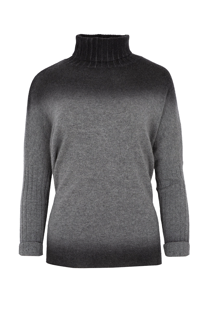Jersey oversize de la firma francesa absolute cashmere. Cuello vuelto y manga larga en canalé ancho . Aberturas laterales. Color gris en degradé . Composición: 100% cashmere.