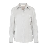 Camisola silver metalizada, fluida de la firma italiana Incotex de cuello solapa y manga marga. Composición: 70% lino, 30%algodópn. Tallaje italiano. Hecho en Italia.