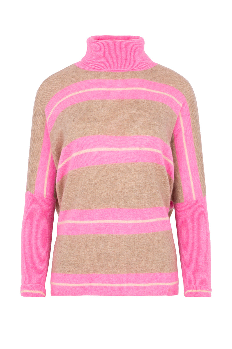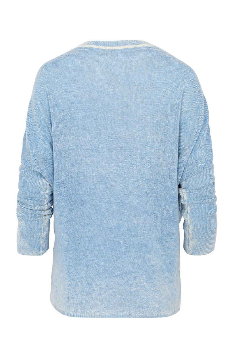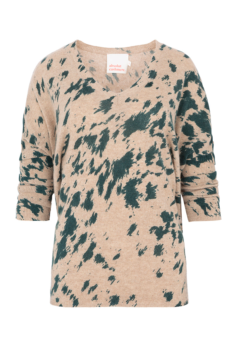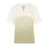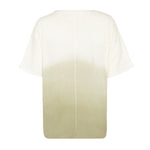 Camiseta oversize con cuello mao, aberturas laterales y manga kimono. Efecto degradé en blanco y verde. Composición: 70% algodón, 30% lino.