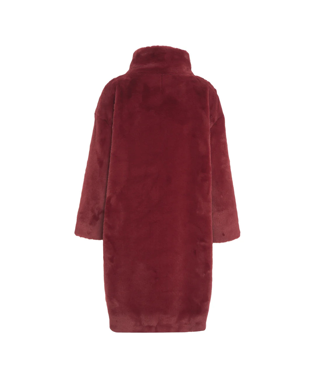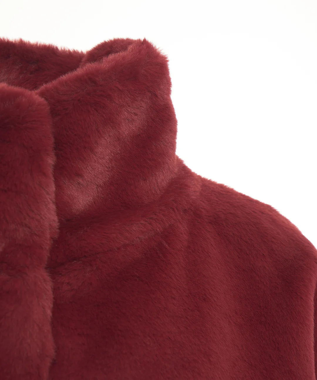 Abrigo de pelo de la marca Herno, con corte oversize, cuello alto, manga caída y cierre delantero de corchetes, confeccionado en visón ecológico de color burdeos y forro logotipado en contrataste en tonos tierra. Composición: exterior, 100% poliéster, interior, 100% poliéster. GC000491D-12422-6705 BOURDEAUX