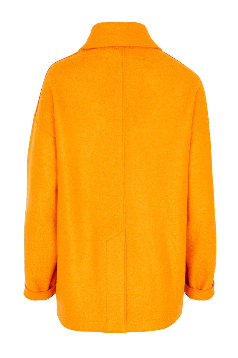 Chaquetón cruzado de paño , en color mandarina y cuello solapa. Bolsillos frontales y cierre con botones. Composición: 100% Lana virgen. Tallaje italiano. Hecho en Italia.