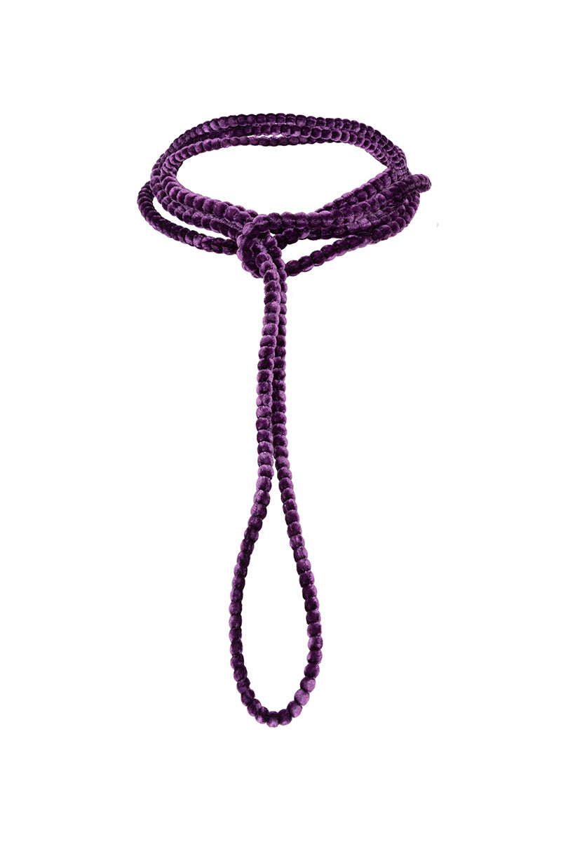 Collar largo de bolas forradas de terciopelo en color berenjena. Posibilidad de combinarlo con varios colores.