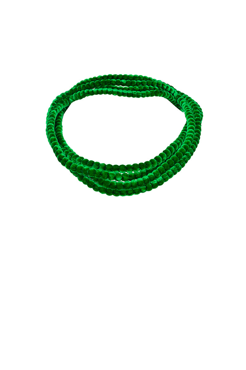 Collar largo de bolas forradas de terciopelo en color verde. Posibilidad de combinarlo con otros colores.