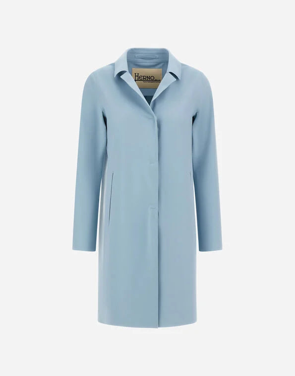 Gabardina de la marca Herno, en neopreno color azul denim. La prenda va cortada a laser con bolsillos invisibles y costuras termo selladas. Largo a media pierna con cuello solapa, cierre con botones automáticos forrados en pechera y diseño estructurado. Composición: 75% Poliamida, 25% Elastano. Ref: CA00521D-13455S-9024