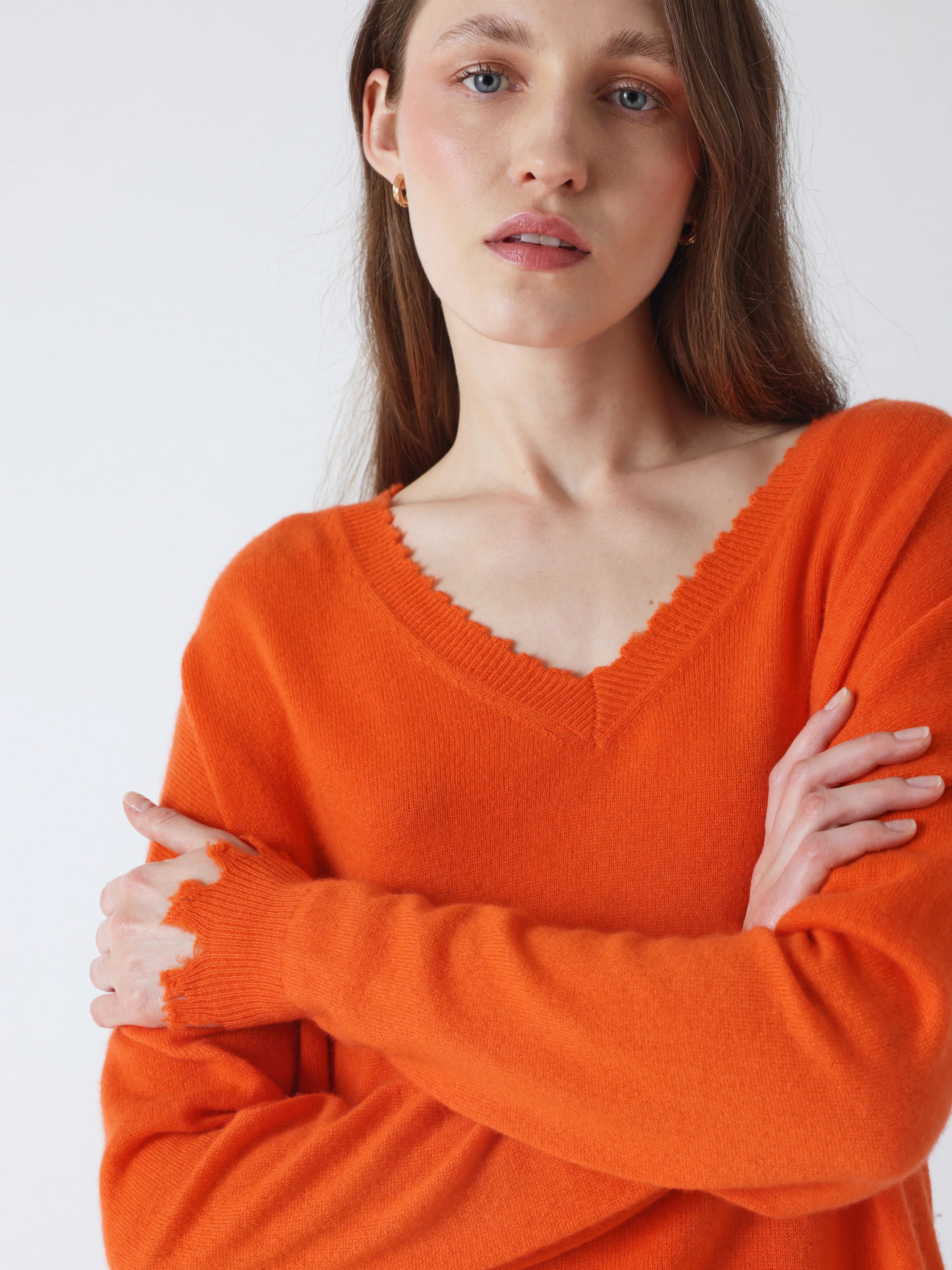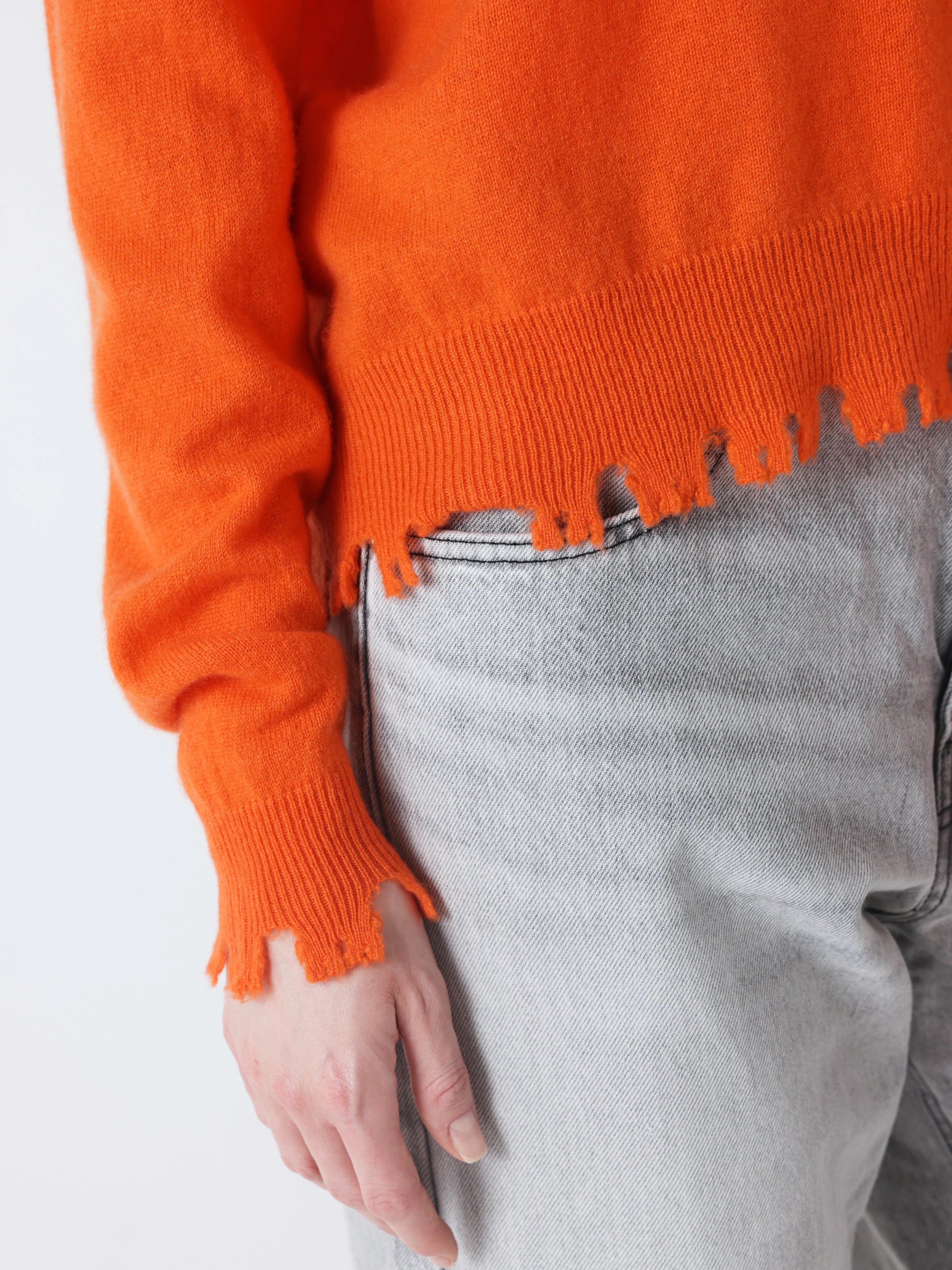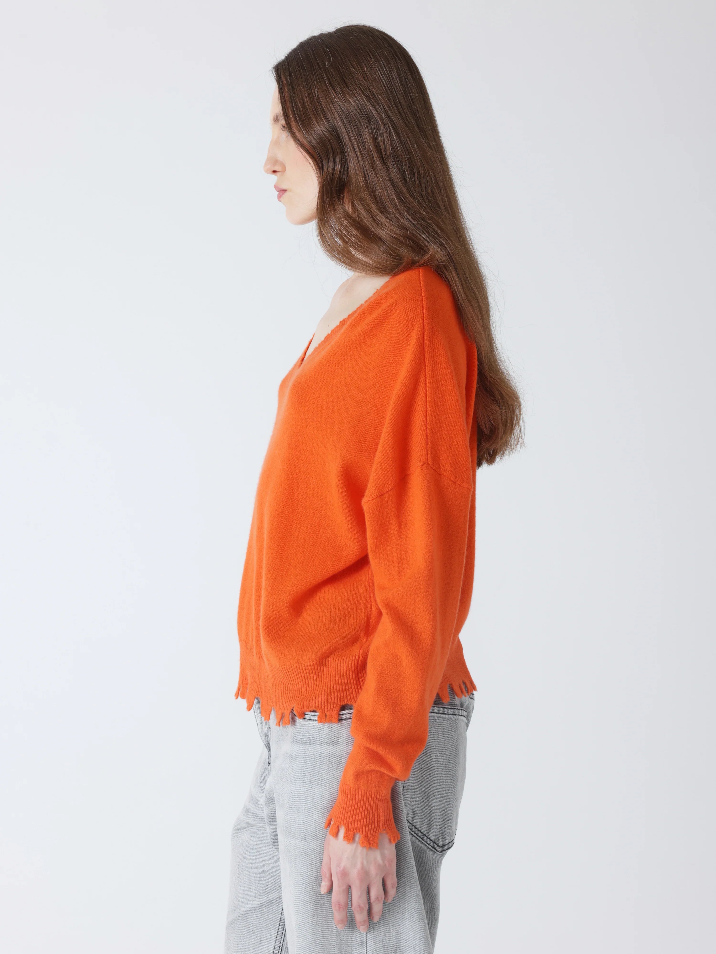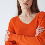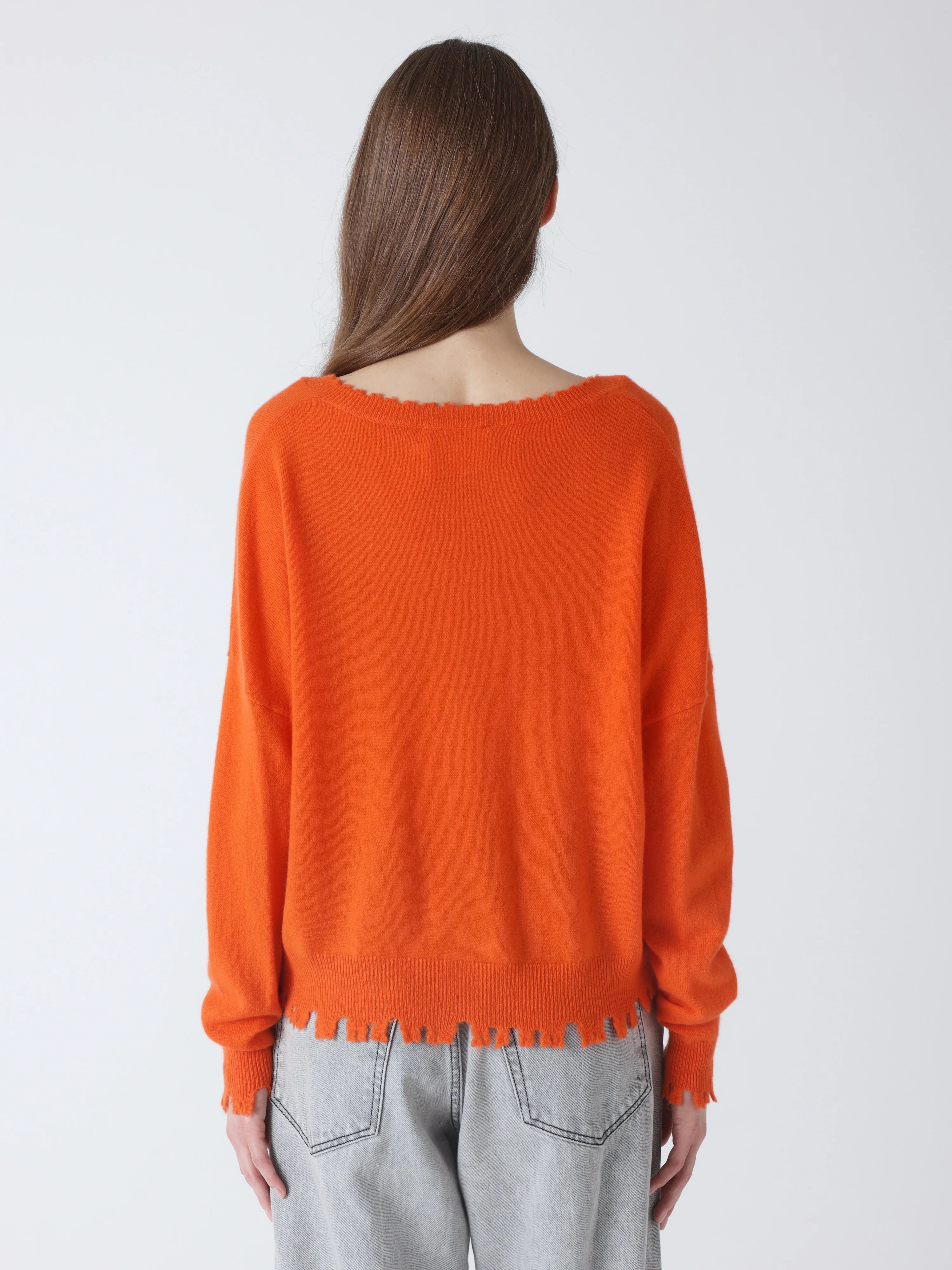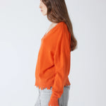 Jersey de cuello pico de la firma francesa Absolut Cashmere en color naranja. Rematado con acabado efecto desgastado. Composición: 100% Cachemire