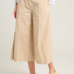 Culotte estilo casual. Color beige con bolsillos laterales y traseros con tapilla y botón. Composición: 95% algodón, 5% elastán.
