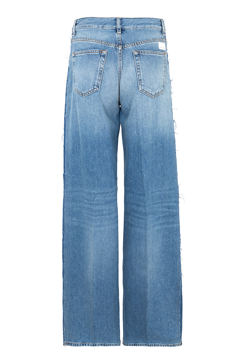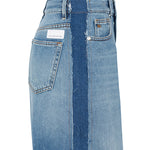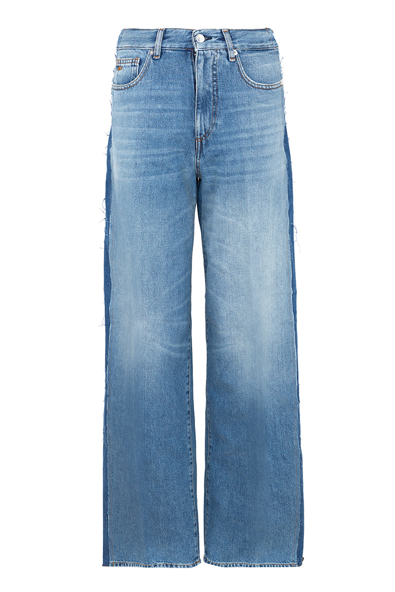 Pantalón vaquero ancho largo bicolor . Bolsillos laterales y traseros. Efecto lavado. Composición: 100% algodón.