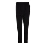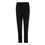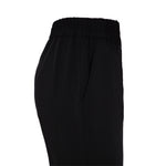 Pantalón fluido color negro con cinturilla elástica en la parte trasera. Bolsillos laterales, traseros de ojal y vuelta en el bajo. Composición: 100% poliéster. Tallaje italiano.