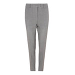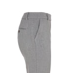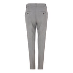 Pantalón de tiro alto con cinturilla, color gris perla, trabillas tipo chino y bolsillos frontales y traseros tipo ojal. Composición: 64% Poliéster, 27% Viscosa, 6% Algodón, 3% Elastán. Tallaje italiano. Hecho en Italia.