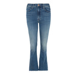 Pantalón vaquero ligeramente acampanado de talle alto, modelo hustler “ankle fray”, color azul lavado. Cierre frontal con cremallera y bajo desflecado. Composición: 94% Algodón,5% Poliester 1% Elastane. Tallaje americano.
