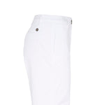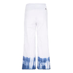 Pantalón chino en gabardina stretch de la marca Shaft. Estilo "crop" en blanco con el bajo tie dye en azul desflecado. Composición: 98% algodón, 2% elastán. Cierre con botón joya. Hecho en Italia.