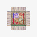 ALOEUW es un chal de seda estampada de 135x135 cm, un accesorio destacado diseñado para hacer una declaración de moda audaz. Confeccionado en seda lujosa, este pañuelo cuadrado de gran tamaño es perfecto para quienes aprecian la combinación de la artesanía tradicional con el diseño moderno. Presenta una cautivadora variedad de patrones intrincados, desde formas geométricas audaces hasta flores ricas y terrosas, y cada versión se complementa con bordes largos y con flecos que añaden un toque juguetón. Su gran tamaño ofrece infinitas posibilidades de uso: como chal dramático, envoltura elegante o pañuelo para la cabeza. Un imprescindible para los conocedores de la moda. Composición: 100% Seda.
