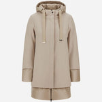 Bolsillos con cremallera, relleno de plumón. Prestaciones: Tratamiento hidrorrepelente. Made in Italy. Composición: 75% WV - 25% PA - TEJIDO PRINCIPAL: 75% LANA VIRGEN 25% POLIAMIDA TEJIDO SECUNDARIO: 100% POLIAMIDA FORRO : 100% POLIAMIDA ADORNO: 55% ALGODÓN 45% POLIESTER RELLENO (PLUMA): 90% PLUMÓN 10% PLUMA