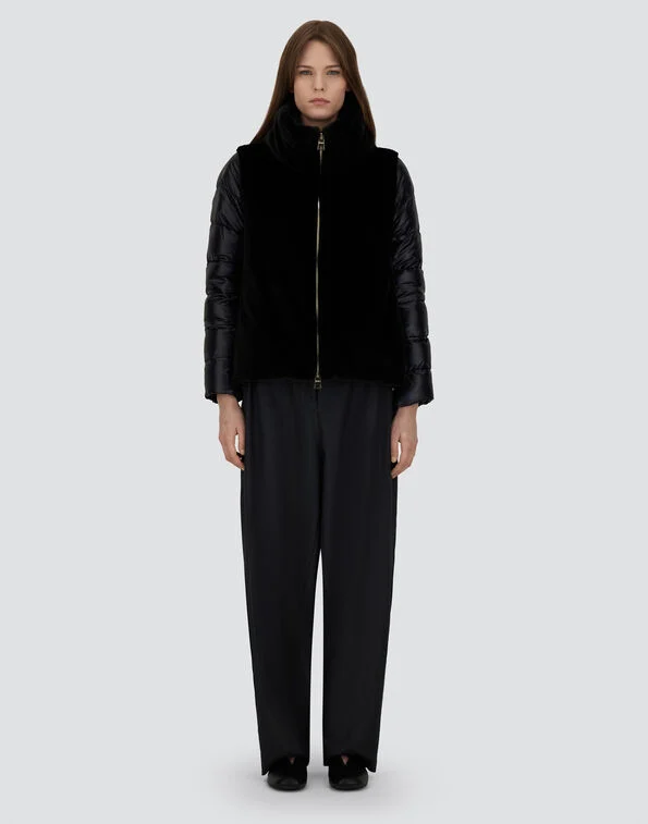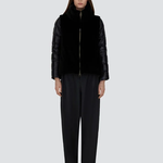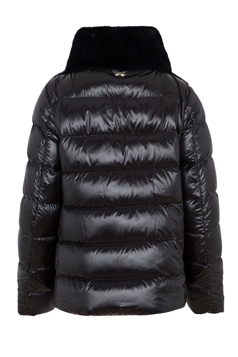 Chaqueta corta de pluma de ganso ultra ligera, de la firma italiana Herno. Combinación de ecofur con acolchado clásico . Color negro. El cuello y la parte delantera están acabados en pelo sintético efecto castor. Cierre con cremallera bidireccional Composición: 100% poliéster . Interior : 90% ,piumino, 10% pluma . Tallaje italiano. Ref: PI002017D12017Z9300.