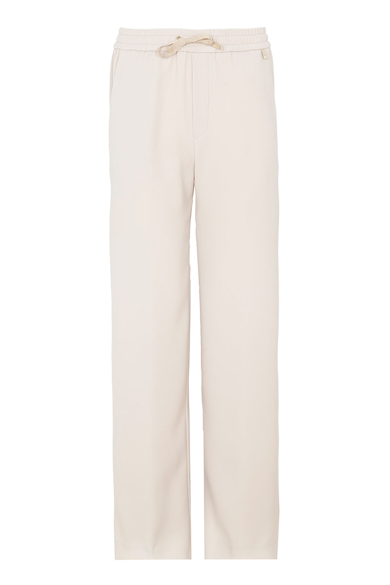 Pantalón confy de la firma italiana Herno en tejido técnico .Cintura elástica con cordón ajustable y bolsillos laterales , pernera ancha. Color piedra . Composición: 100% poliéster. Tallaje italiano